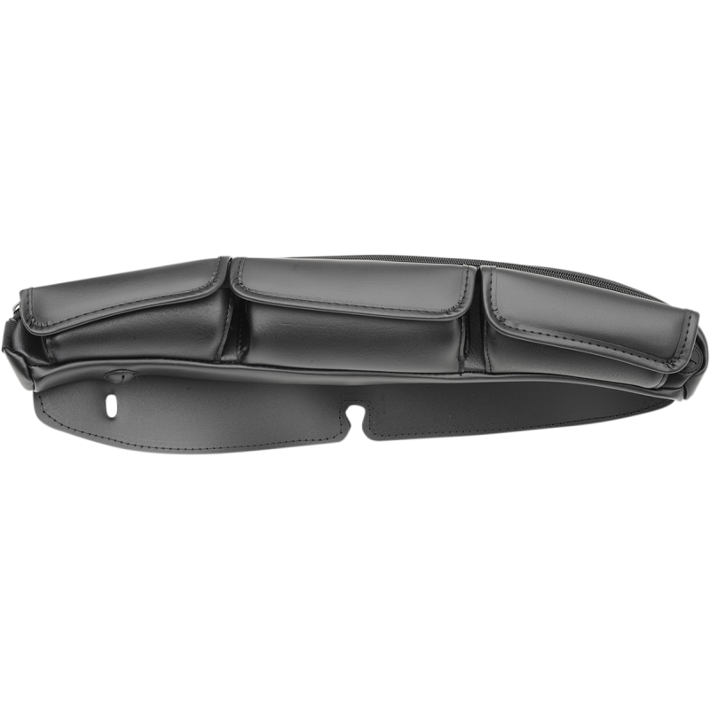 Designed to work with or without Hog-Pod tweeter pod (PART #4405-0172) installed. Features three small front pouches and one large zippered pouch. Front right pouch has grommet to allow Hogtunes audio cable to pass through. Made by Saddlemen.
