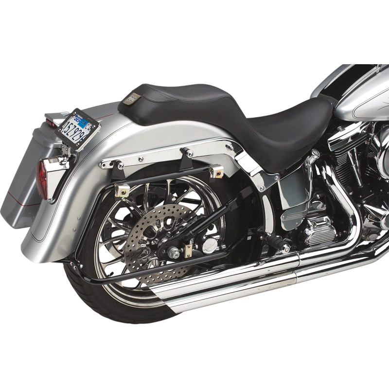 Made of high-quality steel with a black powdercoated or chrome finish. Comes with fastening mechanisms. Will work with fixed or detachable sissy bar side plates. Use with 93-21 style OEM-style hard-sided saddlebags. Made in the U.S.A.