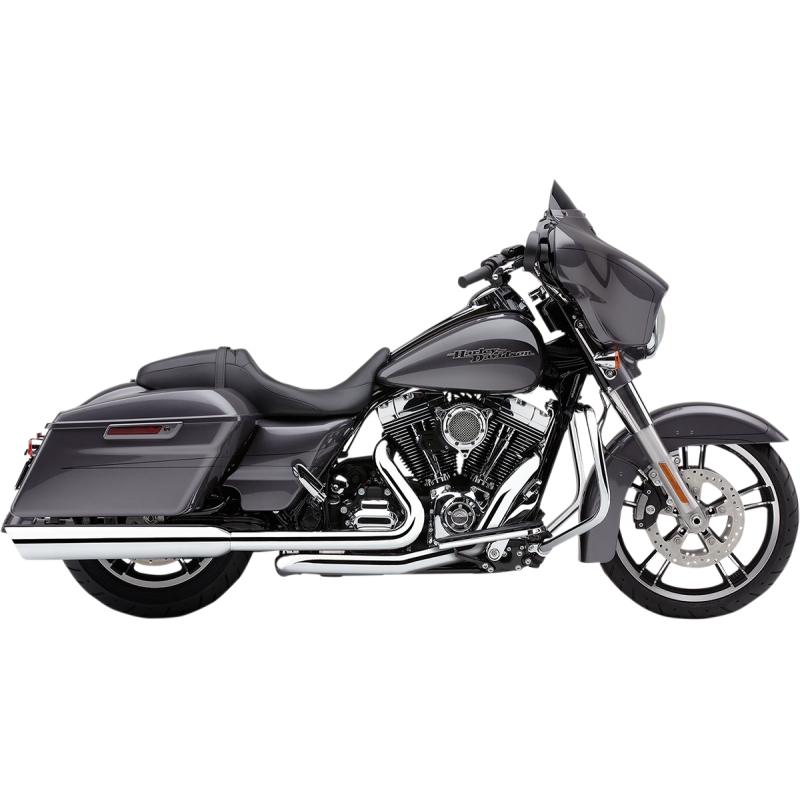 Rolled and scalloped outer tip. Matching scalloped inner tip. Cobra’s® exclusive constant velocity louvered core. Cores secured on the inside, with no outer screws. Classic deep and aggressive sound. Chrome finish. Sold in pairs.