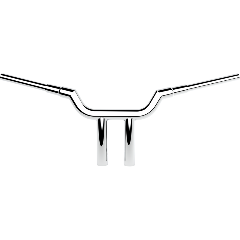 Modeled after MX bars to give your bike a tough look. Features 3 1/2" on-center risers. Top of the bar is mitered. Bars are sleeved down to accept 1" controls. Slotted for internal wiring and Throttle-By-Wire. Made in the U.S.A.