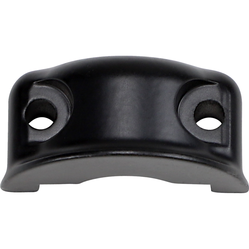 A reproduction of the original clamp half that secures the handlebar master cylinder or clutch control. Die-cast aluminum construction available in black.