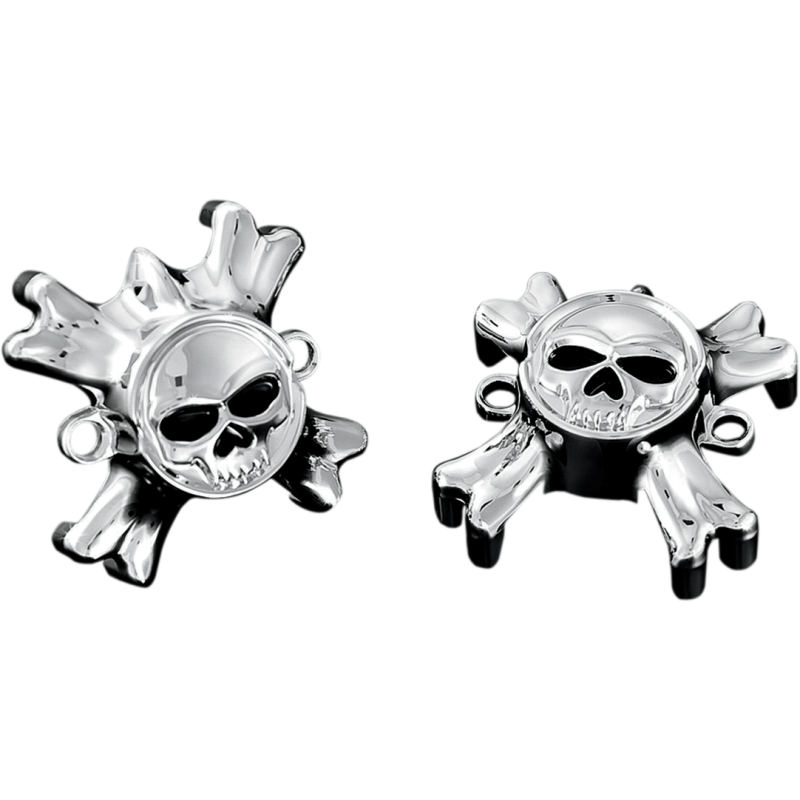 Add a sinister end to your grips. Emblems are a direct replacement for your Kuryakyn Zombie grips, or add them to your Kuryakyn Widow grips for a change of theme. Include necessary installation hardware. Sold in pairs.