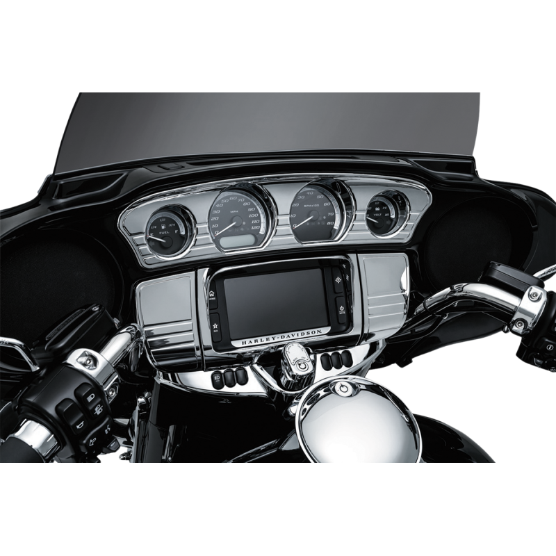 Place an attractive chrome frame around the ignition and the adjacent control switches. The smooth surface is much easier to keep clean than the stock matte finish. Simple peel-and-stick installation requires no tools.