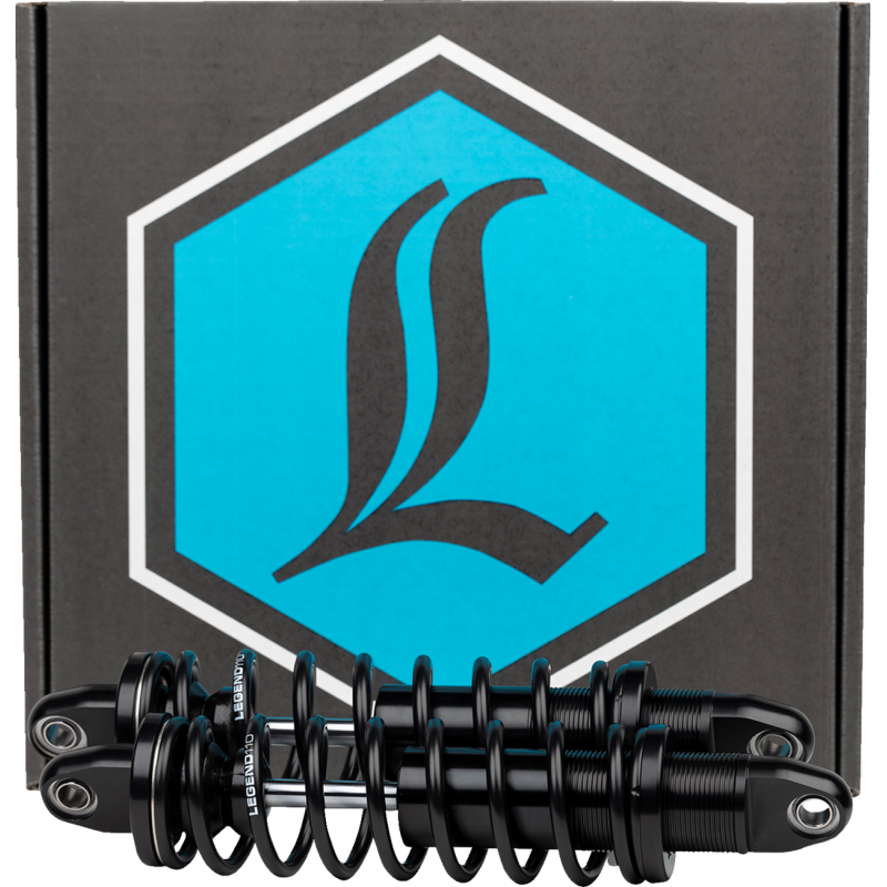 Available only in Black Type III hard coat anodize. Legend's touring-specific coil spring rates provide superior ride comfort and performance. High-flow piston, deflective disc valving, low friction sealing system. Easy installation and alignment provided by spherical bearings. Sold in pairs.