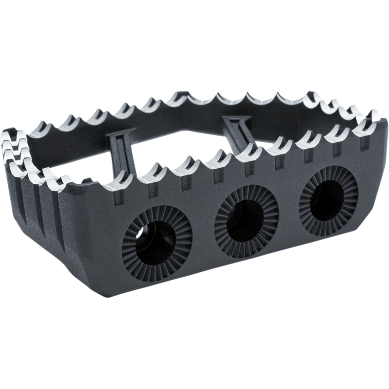 Made from quality aluminum with textured satin black and machined top finish. Features three adapter mounting locations for angle adjustability and removable padded EPDM rubber inserts. Aggressive serrated-tooth design offers extra bite. Measure 5 1/2" L x 3 3/4" W.