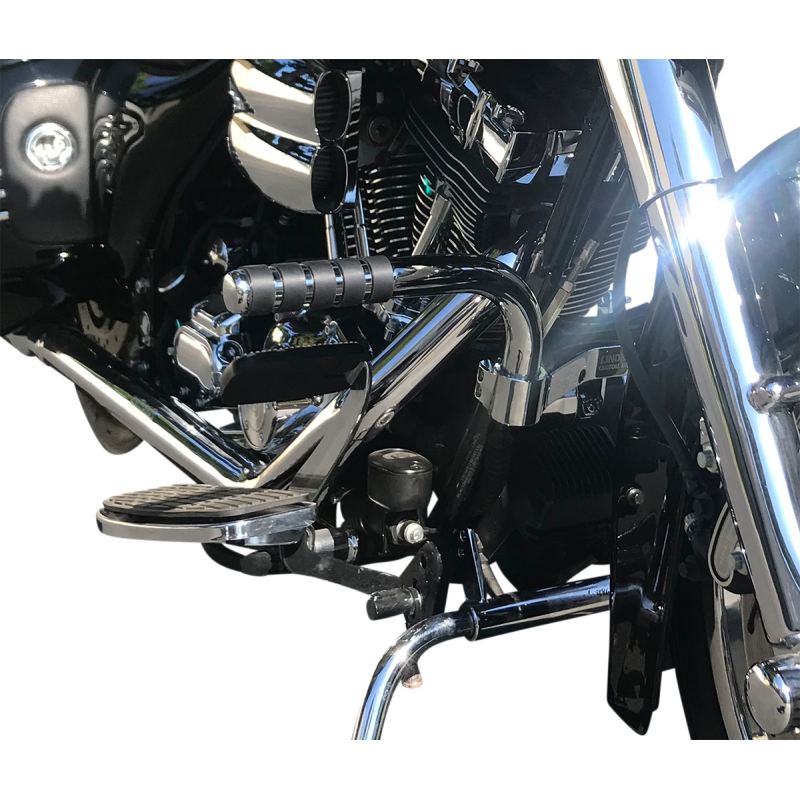Easily adjustable footrests to accommodate riders of various heights. Bolts to frame downtubes. Front bars made from 1 1/4" high-tensile steel tubing. Replaceable bonded rubber footrests provide traction. Includes all hardware.