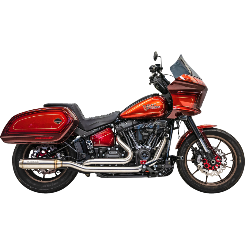 Stainless steel construction featuring stepped 1 3/4" to 1 7/8" true dual headpipes. Includes full-length stainless steel heat shields covering from headpipes to muffler neck. Mufflers are 4" OD with special 2 1/2" louvered baffles for dual sound. Removable matching end caps with TIG welding.