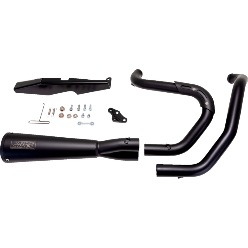 Delivers street-focused power and improved cornering clearance. Features oversized merge collector with megaphone muffler, CNC-machined billet end cap, and race-inspired heat shields. Includes 12 mm/18 mm Super Bung Technology.