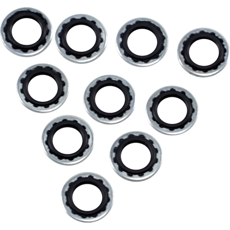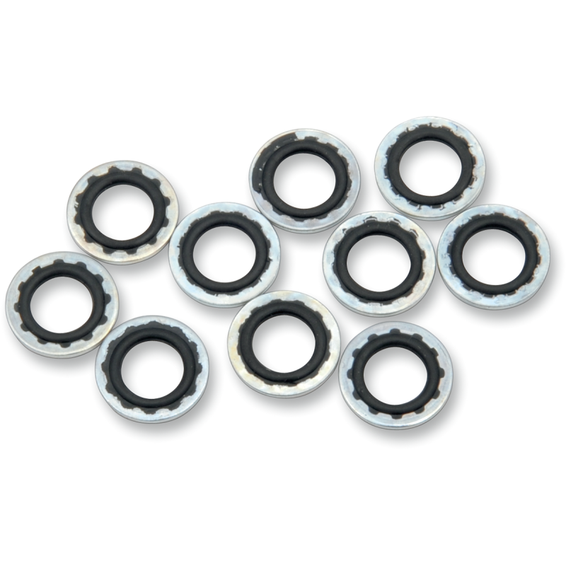 Washers feature a rubber seal that provides superior sealing around the banjo bolt. Sold in 10-pack.