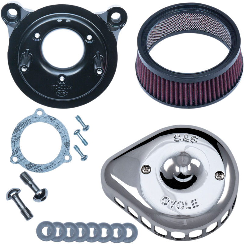 85% of original size for perfect proportions; all laid over the easy-to-install Stealth Air Cleaner system. Iconic look with machined openings around the rim for style and additional airflow. Kits include backing plate, filter and hardware. Built-in stinger cone directs air smoothly into the bore of the carburetor or EFI throttle body and reduces turbulence and increases flow. Made in the U.S.A.