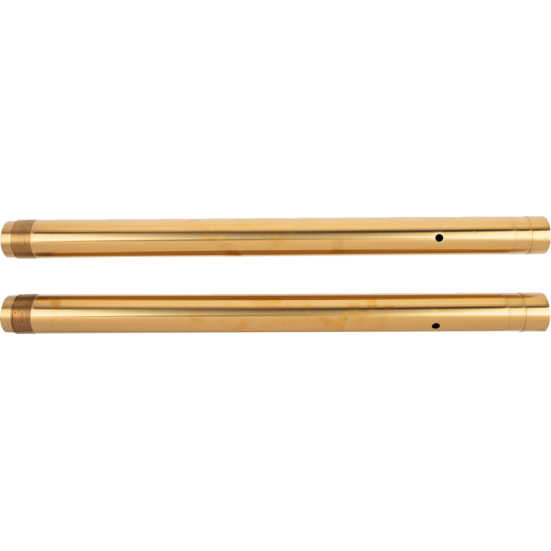 Fork tubes with Titanium Nitride coating for a distinct gold finish, reduced friction, and high durability.