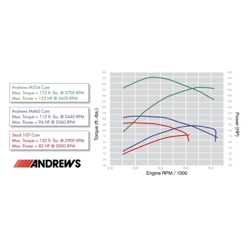 Greater flow efficiency shortens timing durations while boosting performance. More torque and power for modified engines. Wide powerband range (1600 to 5500 rpm). Requires hi-lift valve springs.