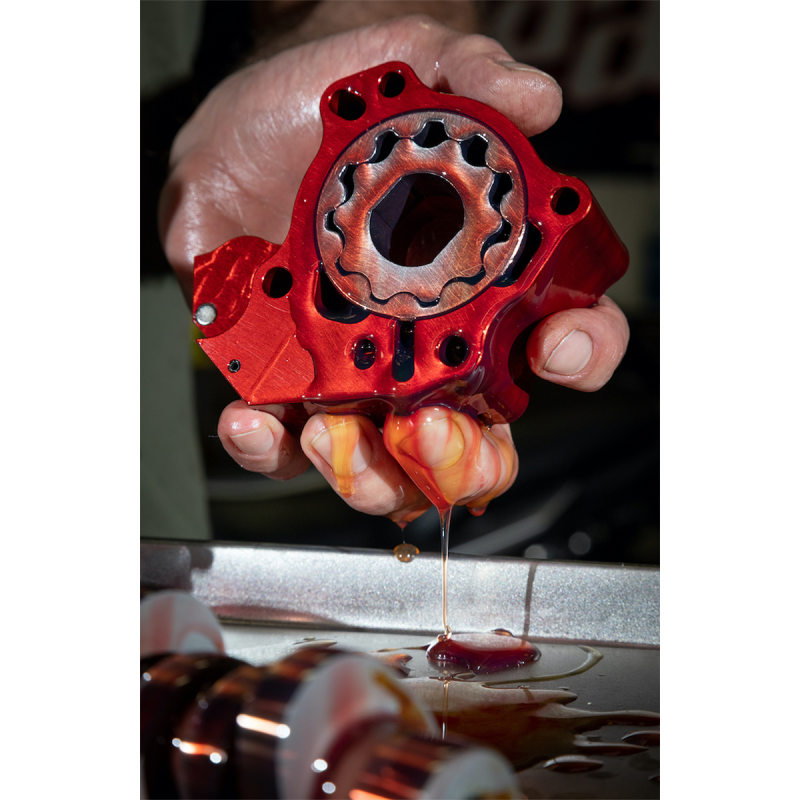 Increase oil pressure, oil volume, engine oil flow and return oil scavenging. Includes a billet 7075 hard anodized oil pump which is 50% harder and stronger than the factory pump holding tighter tolerances. Also includes Feuling High Flow billet camplate made from 7075 aluminum. Made in the U.S.A.