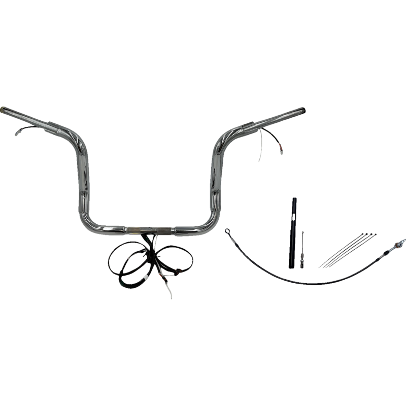 1 1/2" Diameter. Dimensions - End Rise: 12”, Width: 38 1/2”, Center Width: 15”, Pullback: 9”.