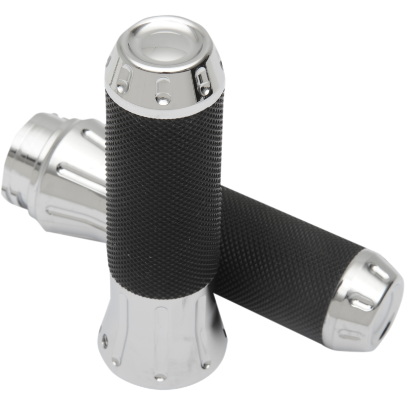 Custom-tailored rubber-covered billet-aluminum grips. Available for both cable- and Throttle-By-Wire applications. Looks great with the matching shift, brake and footpegs. Sold in pairs.