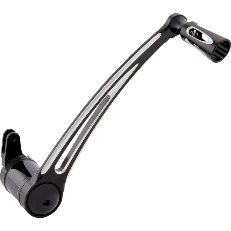 Carved from billet aluminum with a black anodized finish. 1" longer than stock. Matching toe peg included. Perfect match to Ness shift arms, shift rods and floorboards.