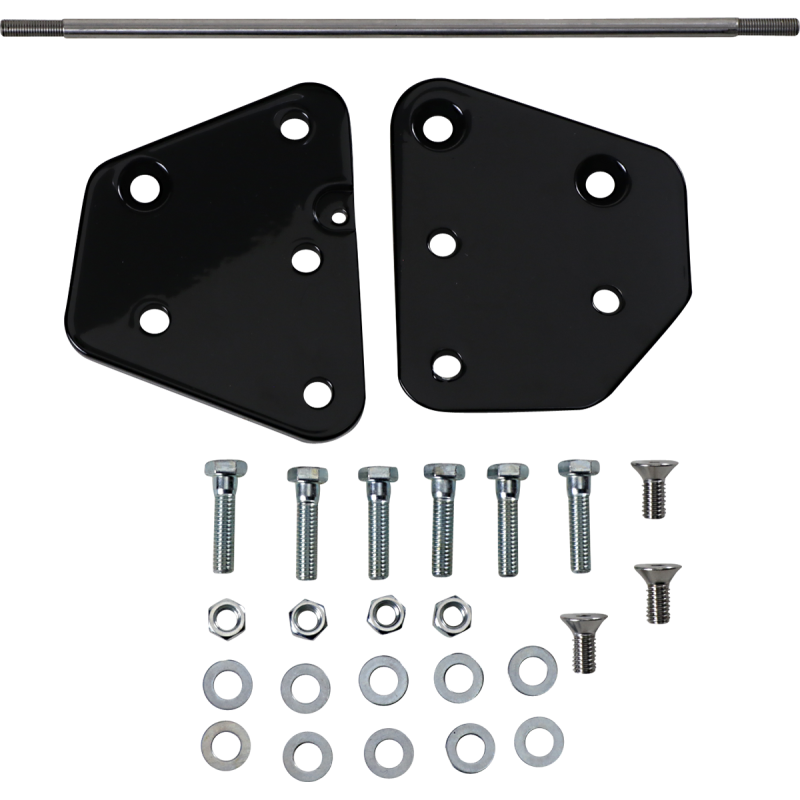 Move the OEM controls forward 2" or 3" for more leg room. Use stock footpegs, brake lever, shift lever and shift arm. Kits include black powdercoated aluminum adapter plates.