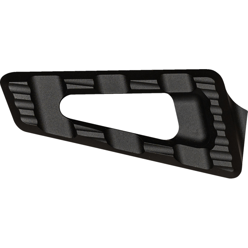 CNC-machined billet aluminum shifter peg with lightweight design and black anodized finish. Dimensions: 1" L x 2.5" W x 0.65" D. Matches Trackboards floorboards.