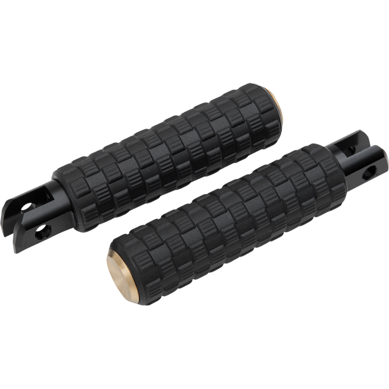 Aggressive yet comfortable rubber design. Repeating pattern rubber offers excellent foot traction and vibration reduction. Forged inner structure offers maximum strength. CNC machined billet end cap with laser-engraved logo. 1 inch longer than stock for more foot room.