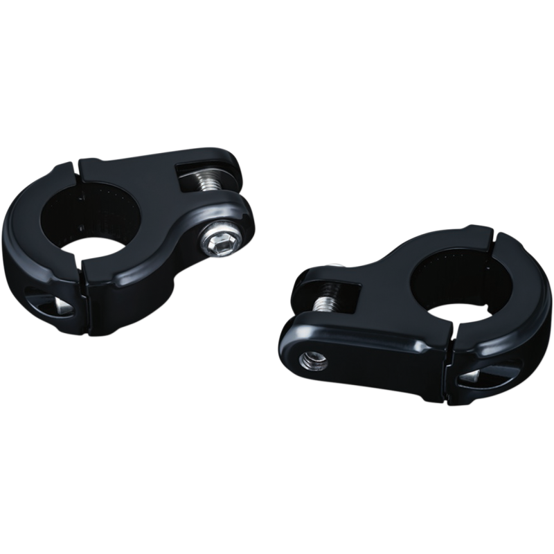 Great fit for any motorcycle with 1 1/4" engine guards, including Touring models with fairing lowers. Slim design with smooth contours. Mounts can be installed to position male-mount footpegs (sold separately) in front or behind the engine guard. Fasteners securing the clamps to the engine guard face inward, providing a clean look. Sold in pairs.