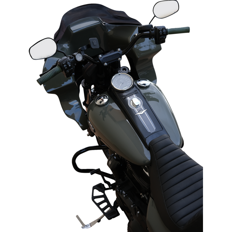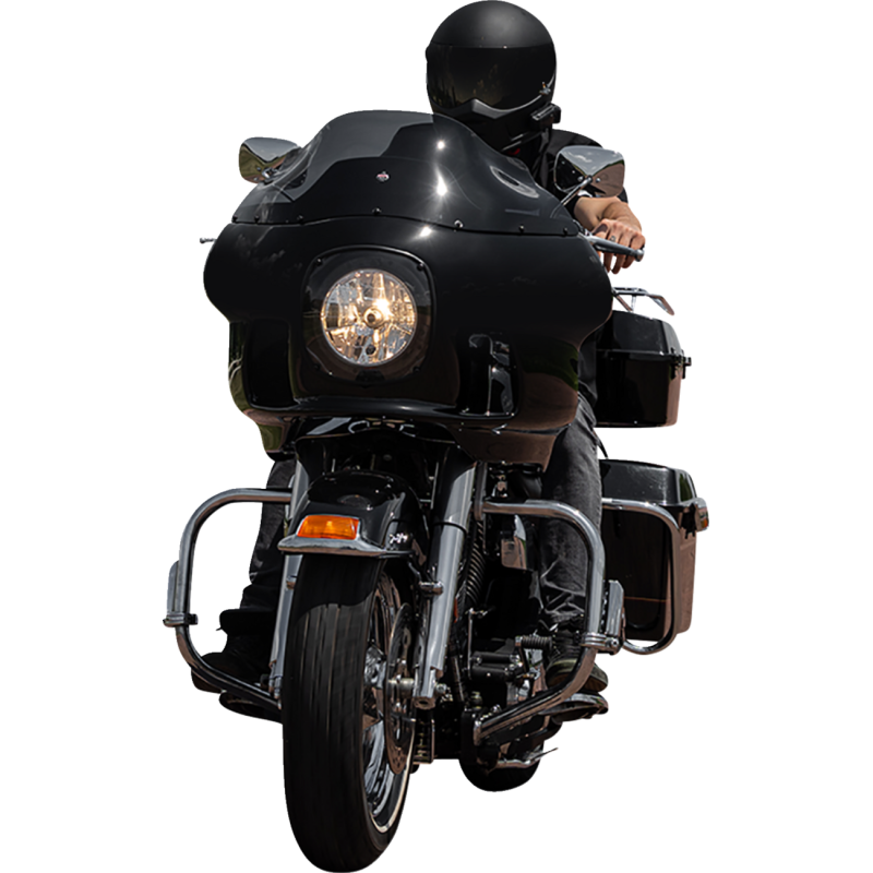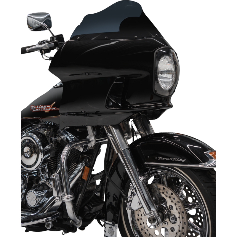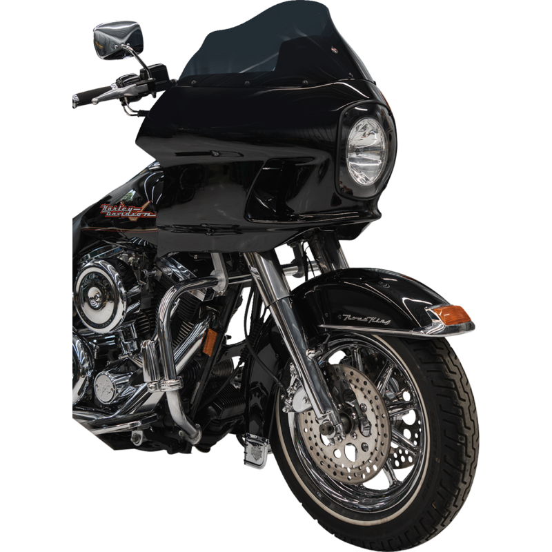 Klassic reproduction designed to elevate your motorcycle’s style and performance. Comes as a complete kit with polyester-primed fiberglass fairing, powdercoated neck bracket, 7" headlight mount, 9" Flare windshield in dark smoke, and all necessary hardware. Made in the U.S.A.