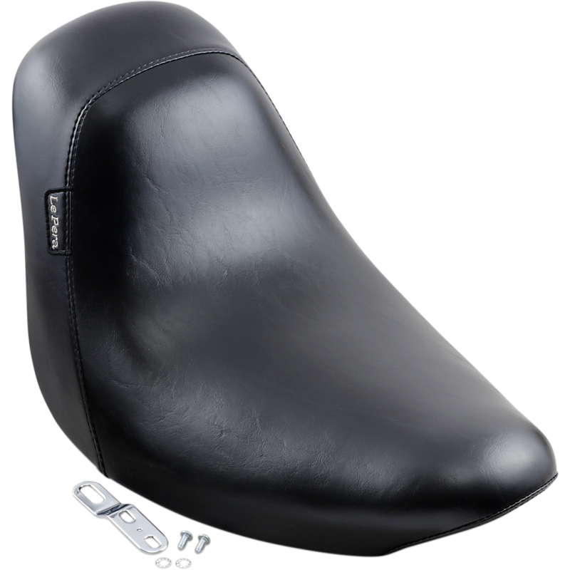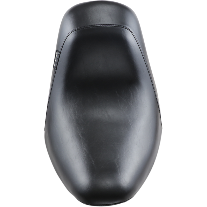Simplistic style brings out the true expression of your custom or stock bike. Top-grade black vinyl cover. Baseplate is powdercoated steel and carpeted to protect painted surfaces. Up-Front seat moves you closer to the handlebars. Made in the U.S.A.
