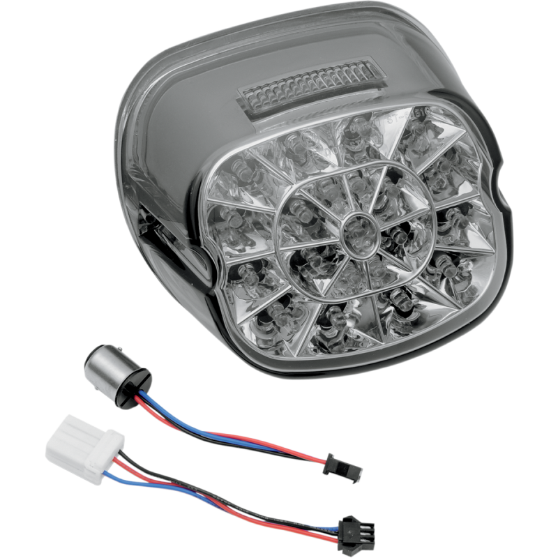 Features a custom webbed design reflector which disperses the LED light in all directions simultaneously. Fitted with super-bright heavy-duty LEDs. Available with top or bottom style white LED taglight. Sold each; mounts to OEM base. DOT and ECE compliant.