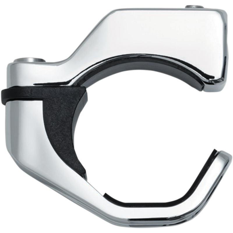 Unique clamping system to ease the process of installing fork-mounted turn signals. Adjusts to fit 39 mm up to 49 mm fork tubes and accepts any aftermarket turn signals using an M8-1.25 threaded stud. Clamps feature cast aluminum construction with foam rubber lining for fork protection. Modern design not typically seen on fork clamps.