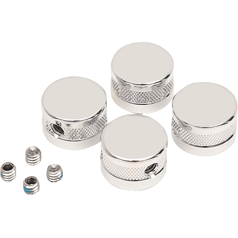 Machined from solid aluminum, then chrome-plated to a smooth finish. Snap-on locking feature keeps covers in place. Sold in 4-pack. Made in the U.S.A.