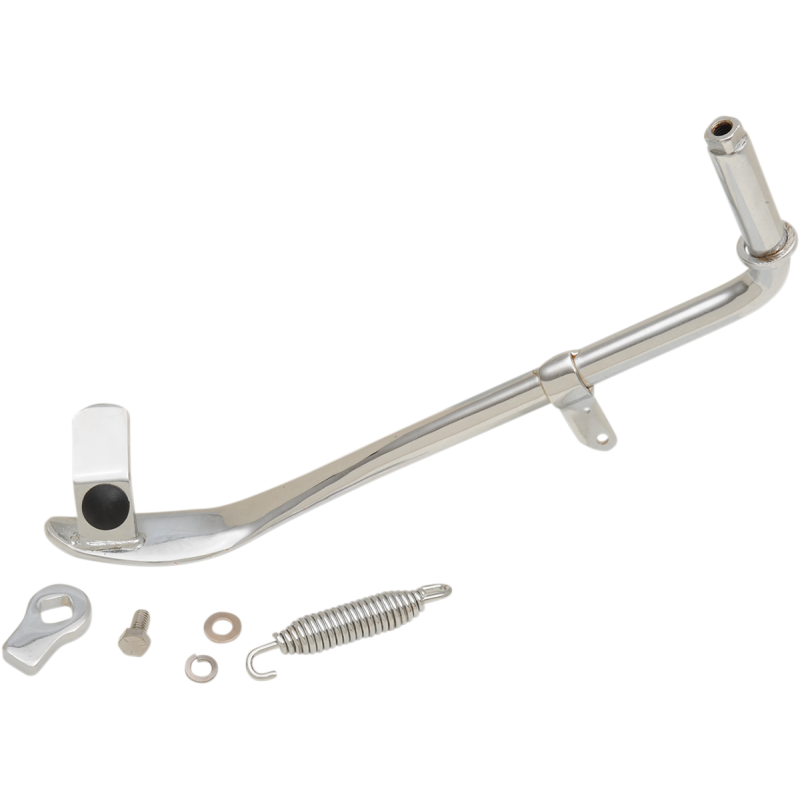 Complete kit includes a polished chrome kickstand with spring tab, leg stop and spring. Available in standard and undersized lengths.