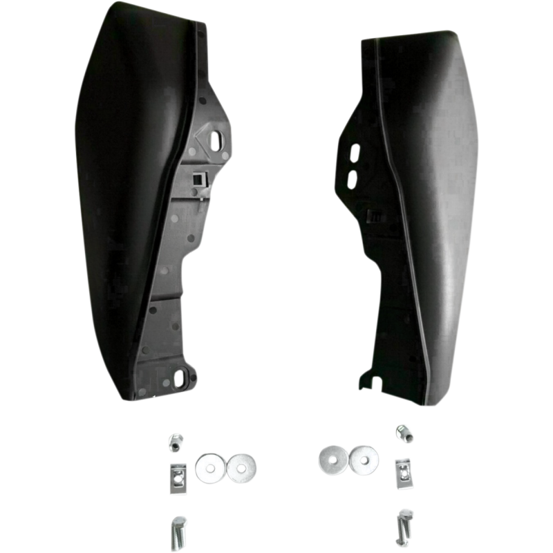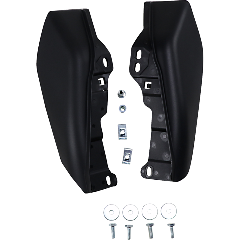 Direct heat away from rider to improve comfort on hot summer rides. Mount to frame just under the front of the seat. Tough black plastic construction.