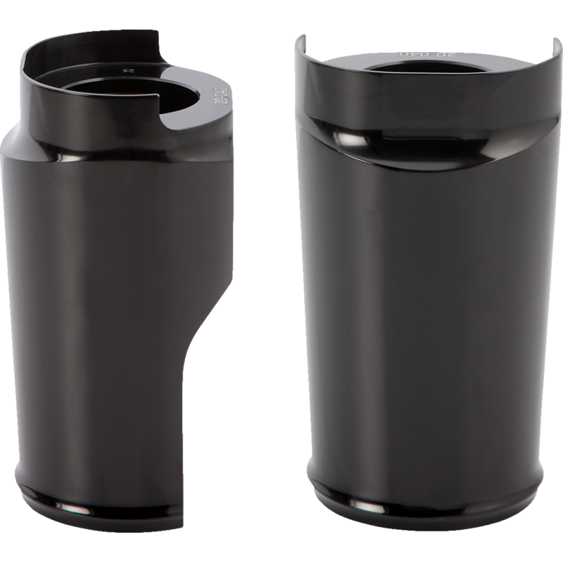 Feature notched inside surfaces to allow direct bolt-on fitment of 18" x 5.5" wide/fat front fenders and wheel kits on Touring models. Universal design accepts all aftermarket fat/wide front fender kits. CNC machined from billet aluminum with a smooth design. Sold in pairs.