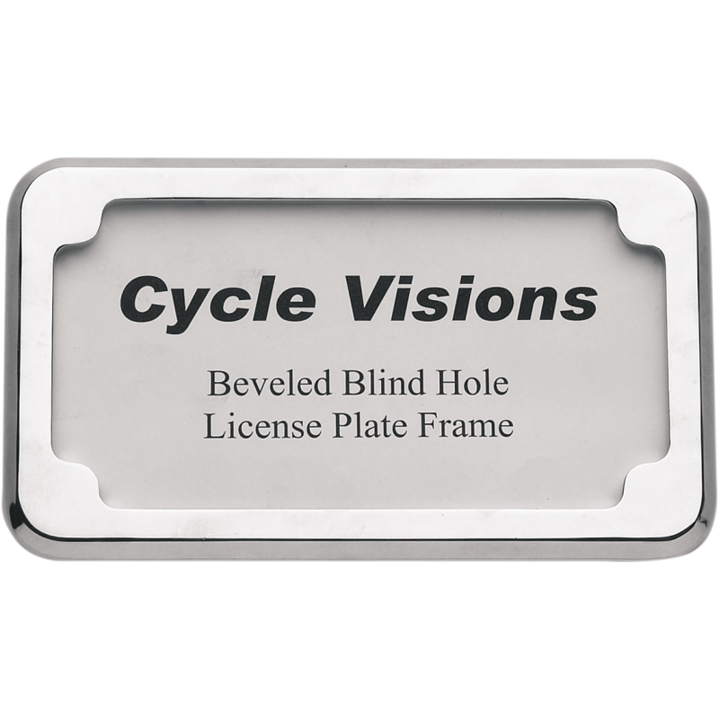 Aluminum construction with blind-hole design for a clean line. Available with chrome or black powdercoated finish. Fits all 4” H x 7” W license plates. Made in the U.S.A.