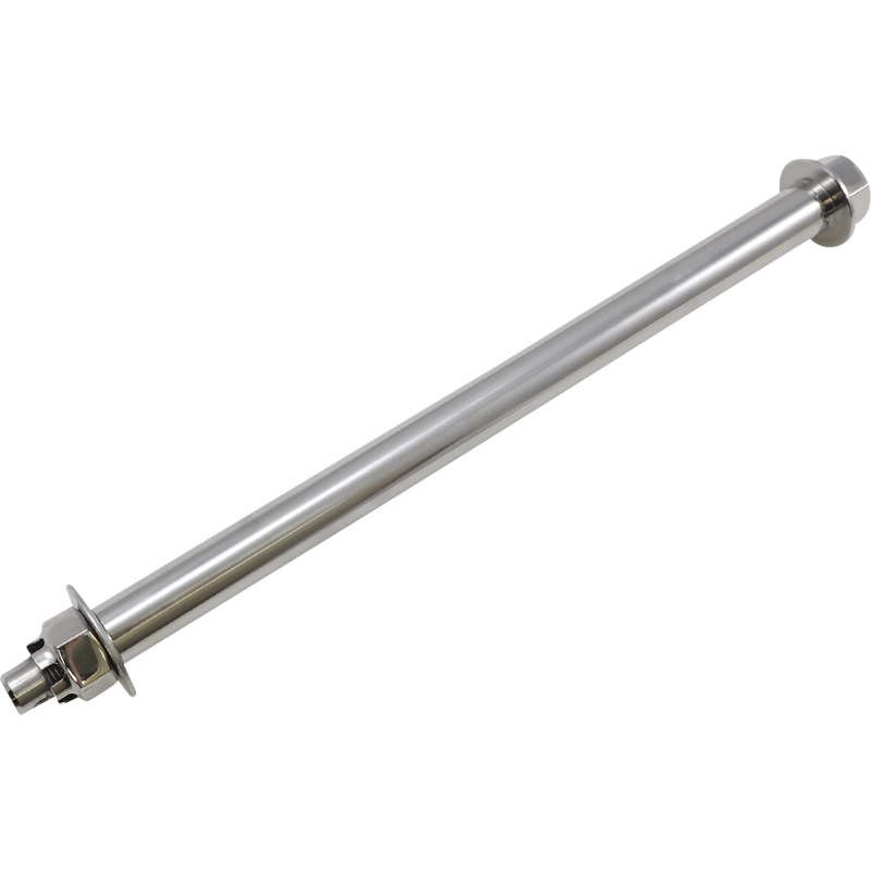 Kit features a polished stainless steel axle, flat washer and nut. Length given is the usable length of the axle, excluding the head and threads. Made in the U.S.A.