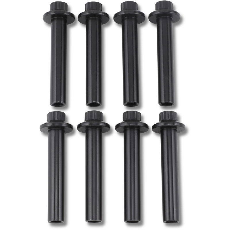 Made from heat-treated 8640 steel with 200,000 psi ultimate tensile strength. Stronger than stock bolts. Features durable black oxide coating, formed threads, and cold-formed 9/16" 12-point head with integral washer. Reusable. Sold as a set of 8.