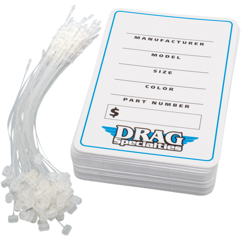 Multicolor tags have space for color, size, price, PART # and manufacturer. 100 plastic tag locks included.