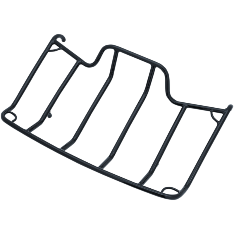 Extra-large luggage rack has a deep-crate design to keep items secure. Tubular steel construction. Tie-down points at each corner of the rack. Measures 20" W x 12" L. Relocation kit allows you to raise luggage rack 1/2". Kit also allows luggage rack to be positioned 1/2" forward or back from its current position.