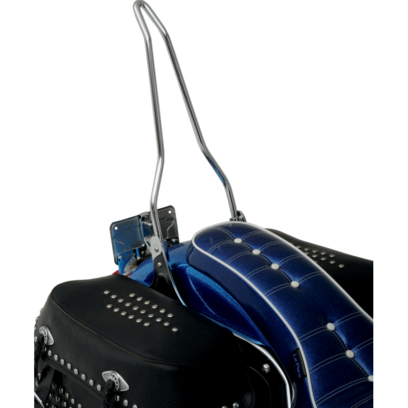 18 inch Attitude style sissy bar (round steel). Fits 6.88 to 7.625 inch side plates.