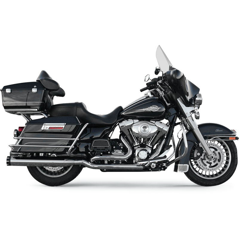 1 3/4" headpipes with 2 1/4" heat shields. Accept any 95-16 style mufflers that fit to stock headpipes, including Bassani Dresser mufflers. Mufflers sold separately. Made in the U.S.A.
