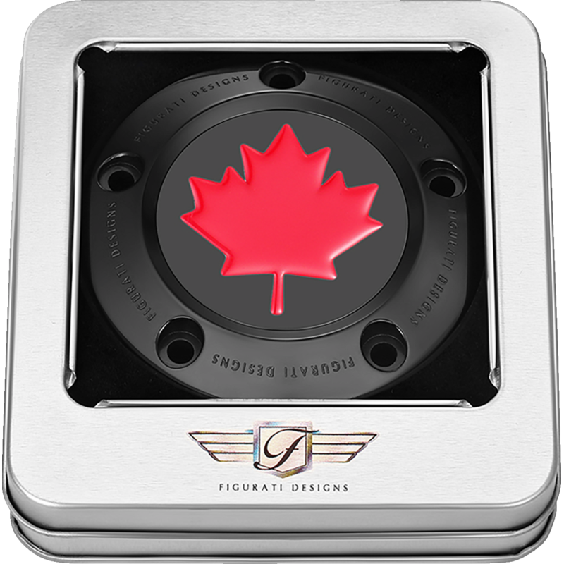 Black w/ red maple leaf design.