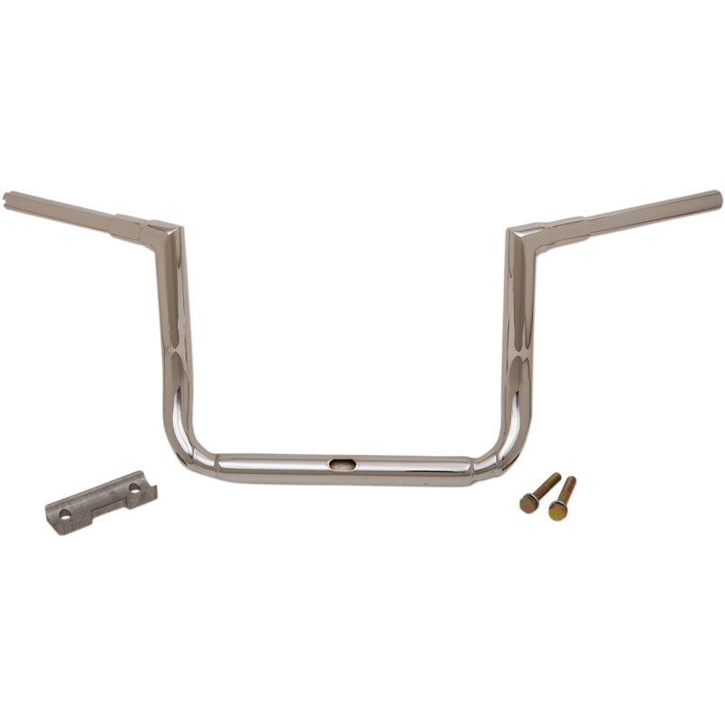 12" Rise, Chrome. Width: 36 1/2", Center Width: 10", Pullback: 5 1/4".