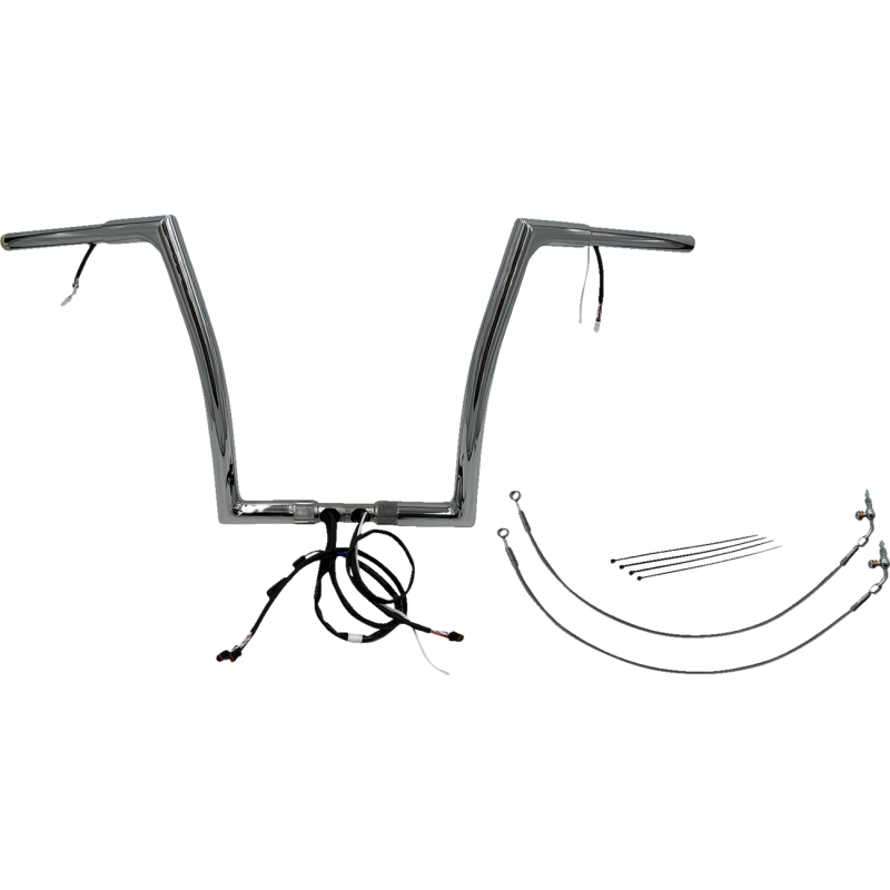 End Rise: 14", Width: 35", Center Width: 10 1/4", Pullback: 8". Chrome finish.