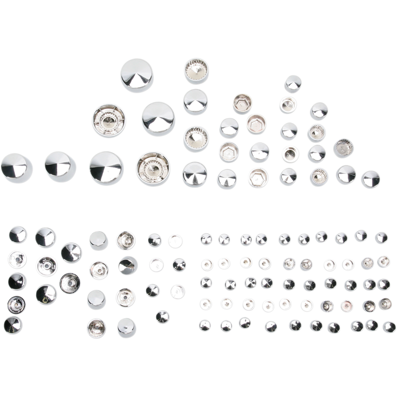 Beautifully designed pieces to cover raw OEM bolt heads on the engine, transmission, primary, and more. Made from ABS material and easy to install with silicone (sold separately). Available in chrome or black finishes.