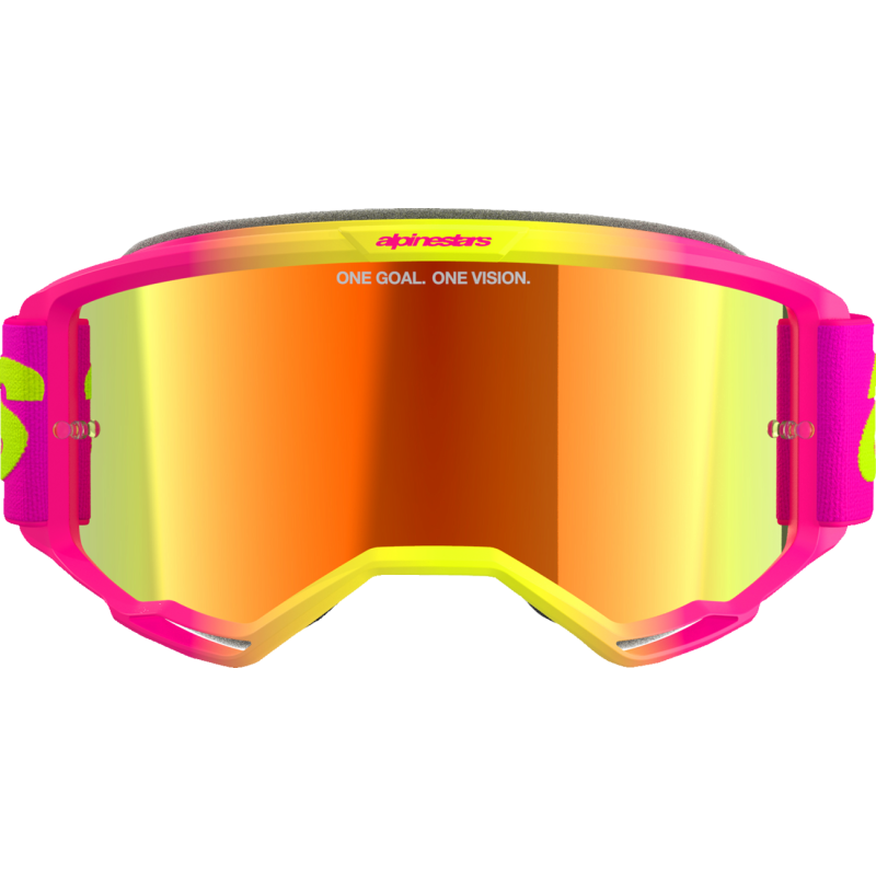 Frame/Strap: Wordmark pink/yellow, Lens: Mirror red