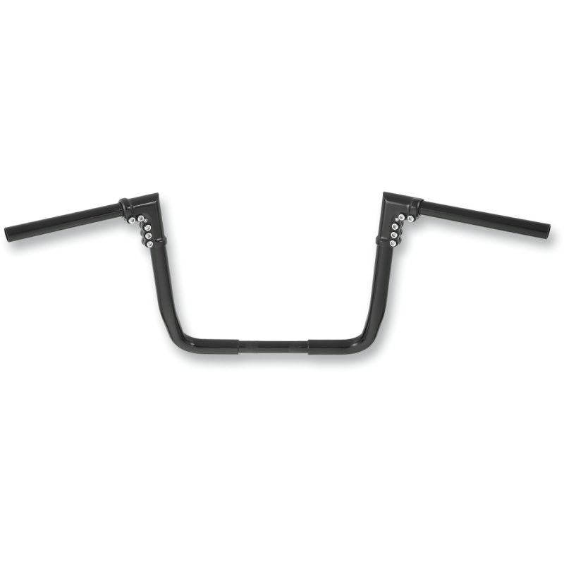Steel handlebars with billet aluminum junction clamps that allow bars to rotate towards or away from the rider for comfort. Clamps can be removed for easy wire installation. Drilled and slotted for internal wiring. Can be used for cable or TBW applications. Features 3 1/2" on-center knurling.