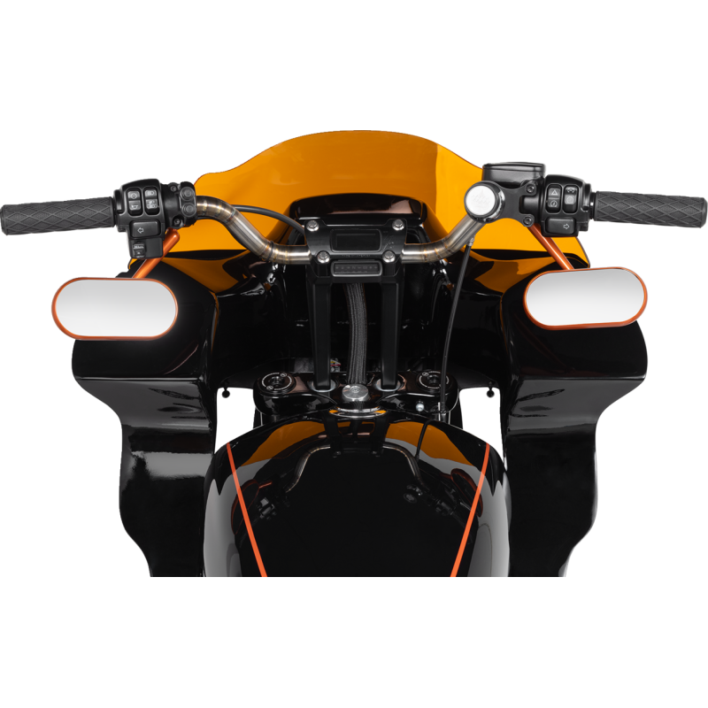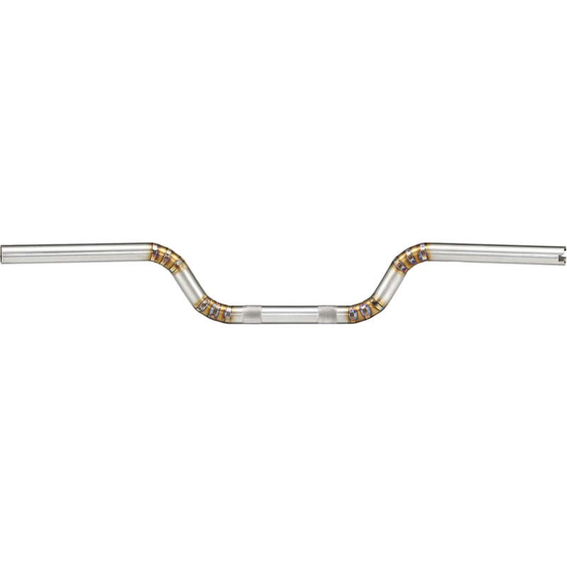 Moto inspired handlebars made from 1" premium stainless steel tubing that is CNC bent into shape. Moto style handlebar provides an aggressive, yet comfortable ride position. Welded stainless finish for a unique look. 3-1/2" on-center knurling. Will work with both cable and Throttle-By-Wire.