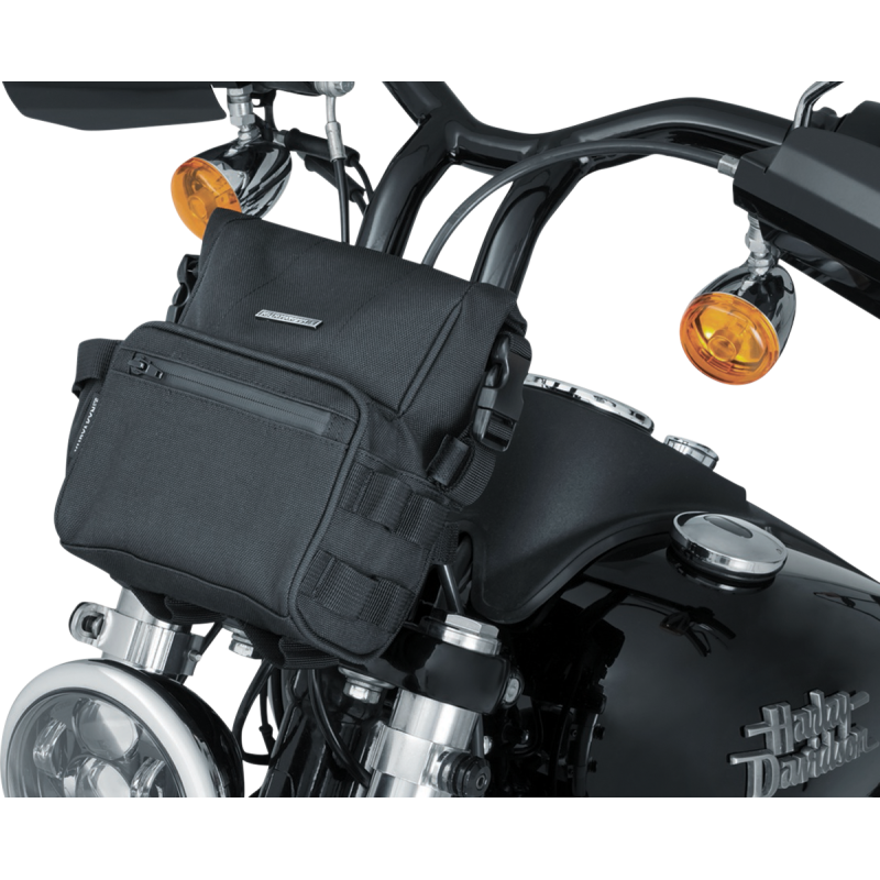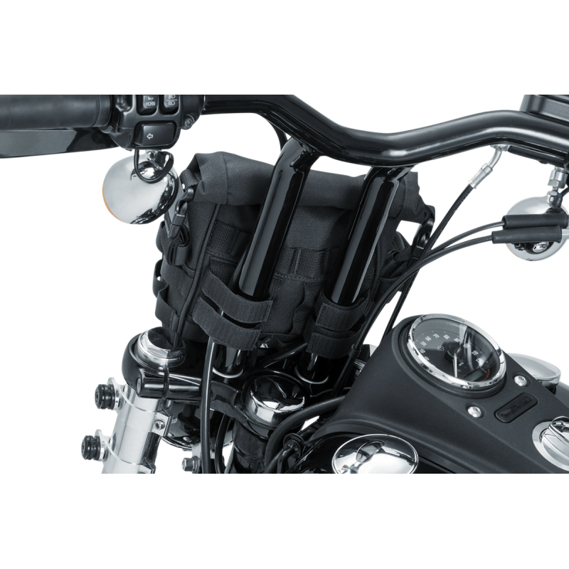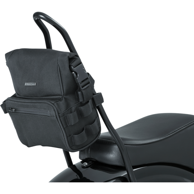 Durable UV-rated, weather-resistant 1200D textile bag with a rolltop design for storage versatility. Features speed-buckle clasps, MOLLE attachment points, and quick-stash pockets. Safe storage for small items. Dimensions: 7" W x 4" D x 9" T. Measures 266 cu. in. (4.5 L).