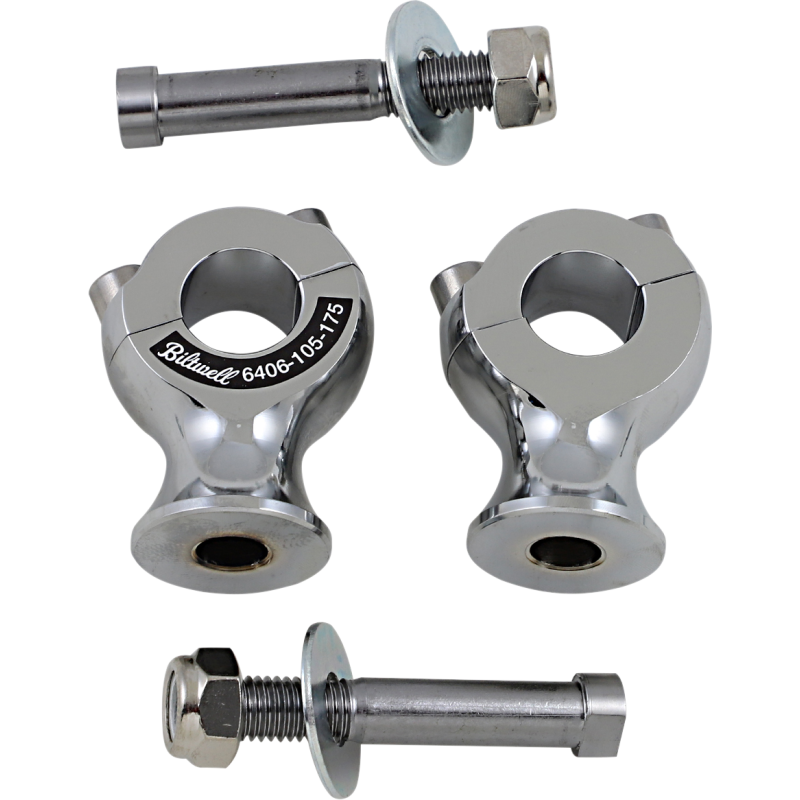 Investment-cast stainless steel construction. Fit handlebars with 1" diameter in clamping area. Bottom clamps accept 1/2" x 13 mounting hardware. Includes stainless steel Allen cap handlebar clamp screws. Sold in pairs.