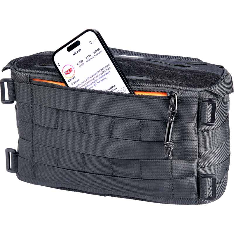 • Install the EXFIL-7 bag on your frame’s down tubes, above the headlight, on tall and mid-sized handlebars, and of course on either side of a sissy bar (in front of the taillight and behind your lower back