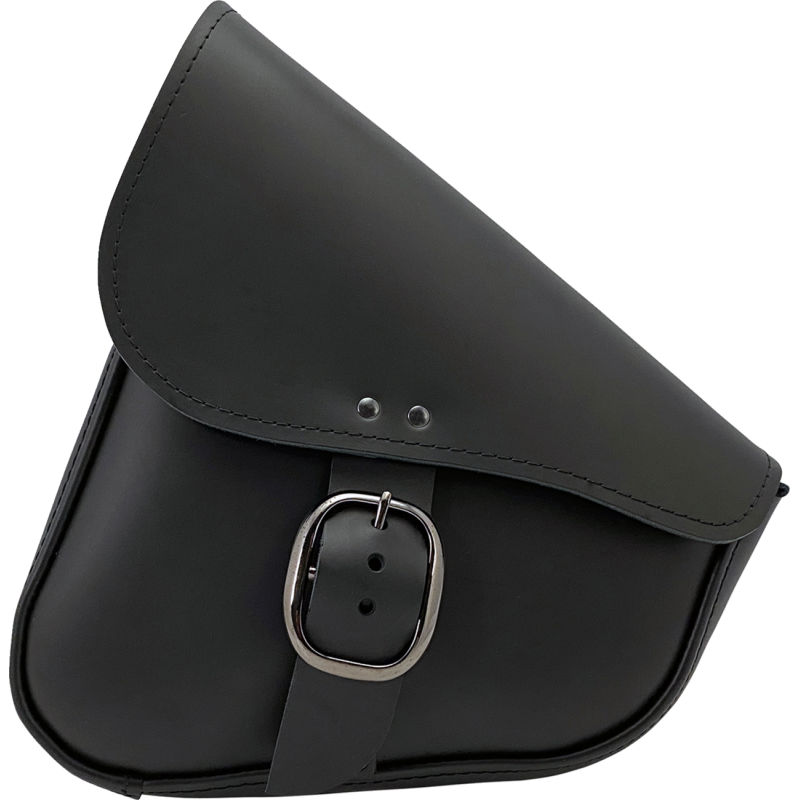 Black bag with brass buckle. Dimensions: 10.5" L x 11.5" W x 4.5" H.